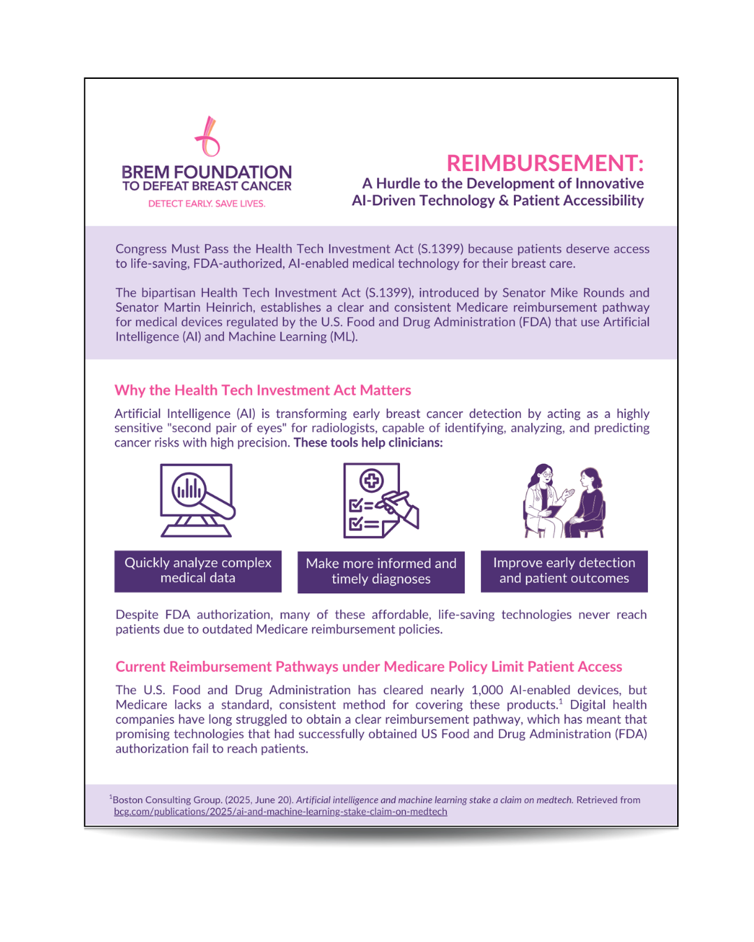 These technologies help physicians, including radiologists and breast imaging experts, quickly analyze information, make more informed diagnoses, and improve patient care. Yet without a Medicare payment pathway, many affordable, lifesaving AI-enabled technologies fail to reach patients.